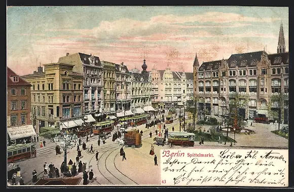 AK Berlin, Spittelmarkt mit Strassenbahnen und Brunnen