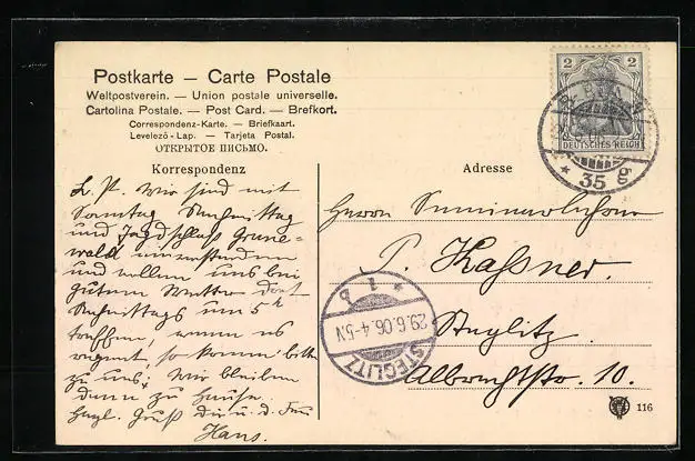 alte Ansichtskarte, gelaufen 1906, guter Zustand