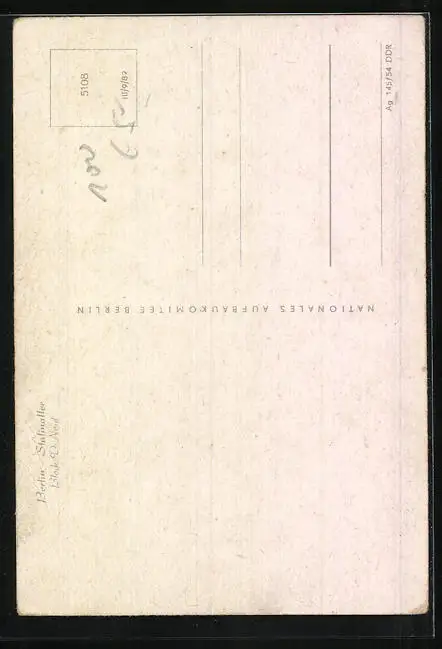 Personenbezogene Daten auf der Rückseite der Karte wurden durch blauen Textmarker unkenntlich gemacht. Die blauen Stellen sind auf die Vorderseite durchgeweicht und wirken sich negativ auf das Postkartenfoto aus