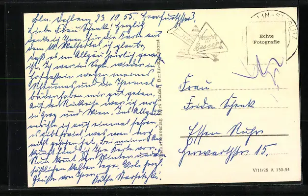 alte Ansichtskarte, gelaufen 1955, Briefmarke entfernt, rückseitig Oberflächenschaden, guter Zustand