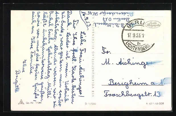 alte Ansichtskarte, gelaufen 1953, Briefmarke entfernt, guter Zustand