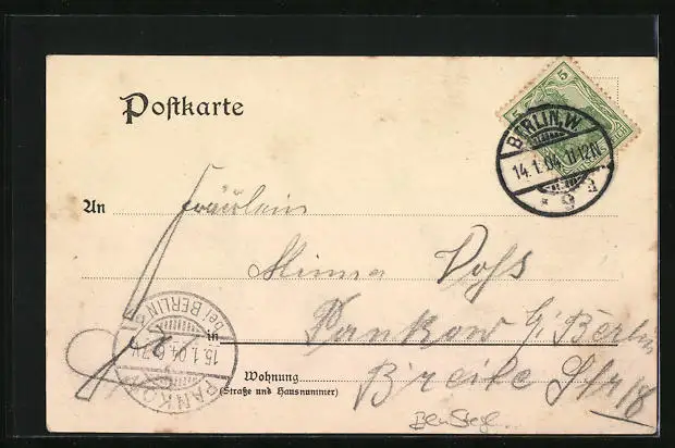 alte Ansichtskarte, gelaufen 1904, Eckknicke unten, guter Zustand