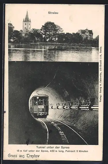 AK Berlin-Stralau, Uferpartie, Tunnel unter der Spree