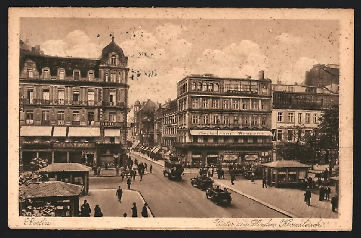 AK Berlin, Strasse Unter den Linden u. Kranzlerecke mit Restaurant Kranzler