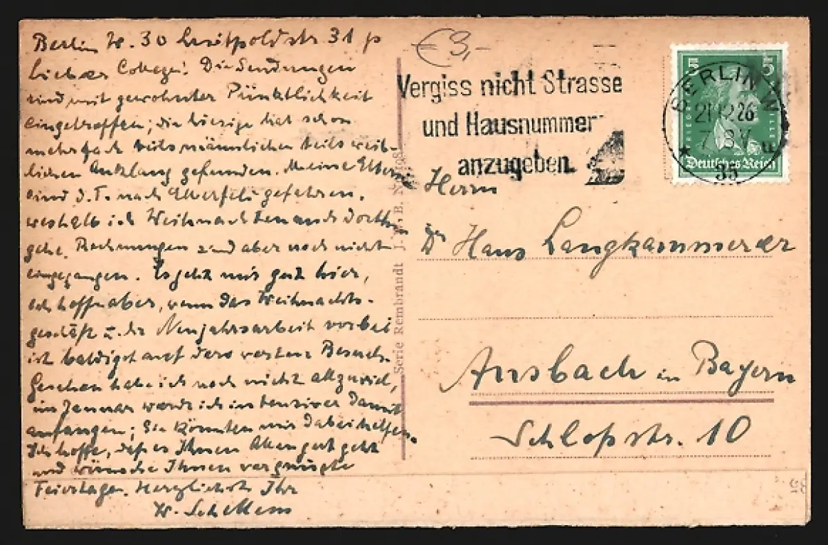 alte Ansichtskarte, gelaufen 1926, Stempelspur, guter Zustand