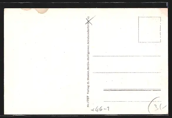 Personenbezogene Daten auf der Rückseite der Karte wurden durch blauen Textmarker unkenntlich gemacht. Die blauen Stellen sind auf die Vorderseite durchgeweicht und wirken sich negativ auf das Postkartenfoto aus