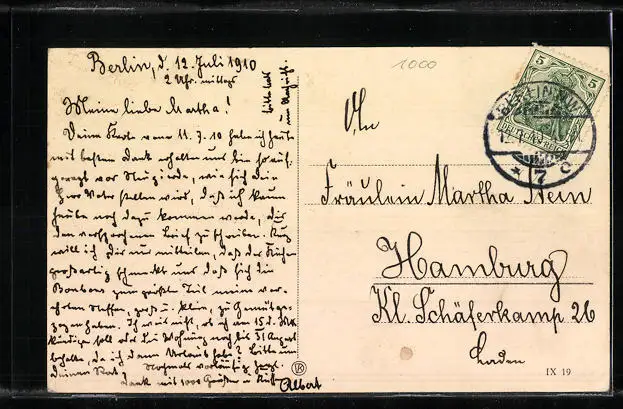 alte Ansichtskarte, gelaufen 1910, guter Zustand