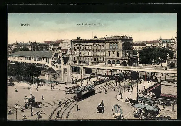 AK Berlin, Strassenbahn am Hallesches Tor