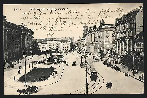 AK Berlin, Strassenbahn am Schlossplatz und Begasbrunnen
