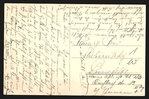 Personenbezogene Daten auf der Rückseite der Karte wurden durch blauen Textmarker unkenntlich gemacht. Die blauen Stellen sind auf die Vorderseite durchgeweicht und wirken sich negativ auf das Postkartenfoto aus