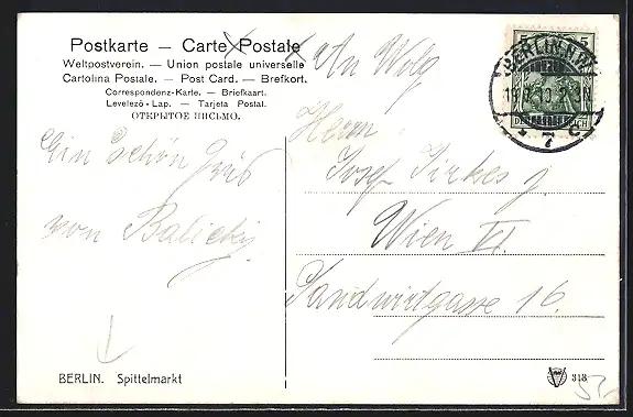 alte Ansichtskarte, gelaufen 1910, guter Zustand