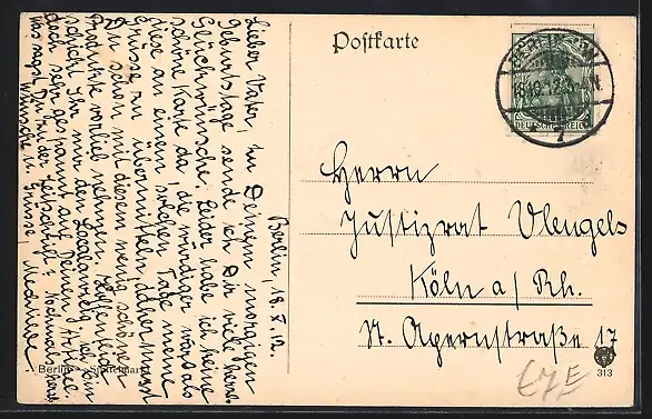 alte Ansichtskarte, gelaufen 1912, Stempelspur, guter Zustand
