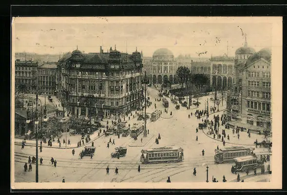 AK Berlin, Strassenbahn an grosser Kreuzung