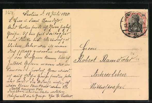 alte Ansichtskarte, gelaufen 1920, Bugspur unten vertikal, guter Zustand