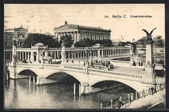 AK Berlin, Strassenbahn auf der Friedrichsbrücke