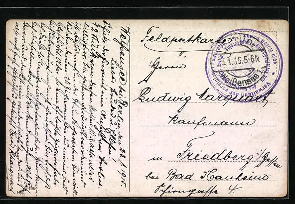 gelaufen 1915, Eckknick li. unten, Einriss li. oben, guter Zustand