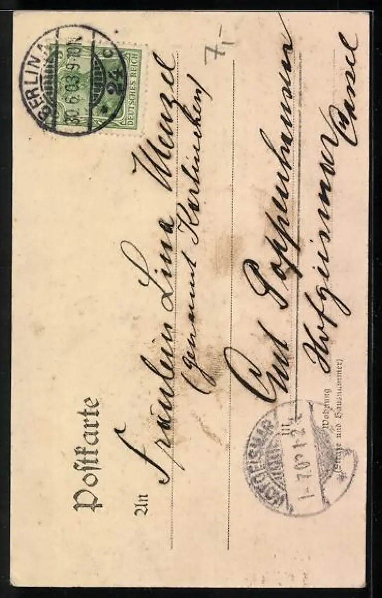 alte Ansichtskarte, gelaufen 1903, Stempelspur, guter Zustand