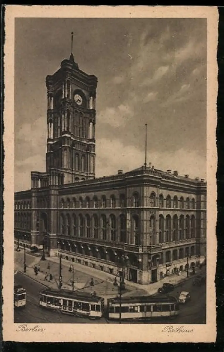 AK Berlin, Strassenbahn passiert Rathaus