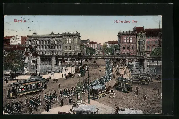 AK Berlin, Strassenbahnen am Bahnhof Hallesches Tor