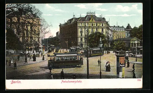 AK Berlin, Strassenbahnen am Potsdamerplatz