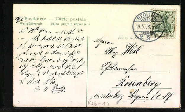 alte Ansichtskarte, gelaufen 1908, Eckknick links oben, guter Zustand