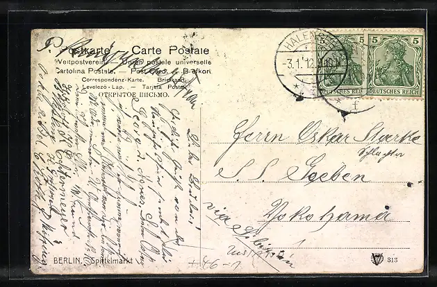 alte Ansichtskarte, gelaufen 1912, Eckknick li. oben, guter Zustand