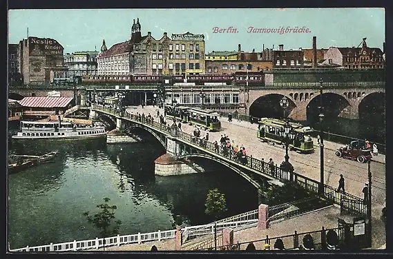 AK Berlin, Strassenbahnen auf der Jannowitzbrücke, Schiffe