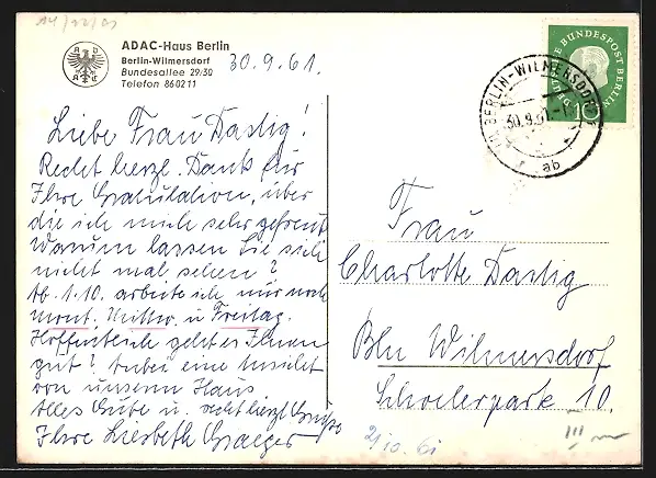 AK Berlin, Strassenpartie mit ADAC-Haus, Bundesallee 29 / 30