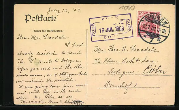 alte Ansichtskarte, gelaufen 1909, guter Zustand