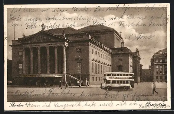 AK Berlin, Strassenpartie vor Opernhaus mit Doppeldeckerbus