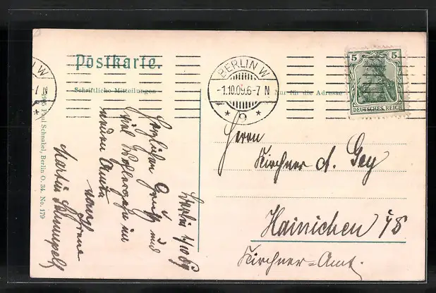 alte Ansichtskarte, gelaufen 1909, guter Zustand