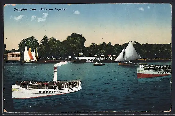 AK Berlin-Tegel, Dampfer auf dem Tegeler See, Blick auf Tegelort