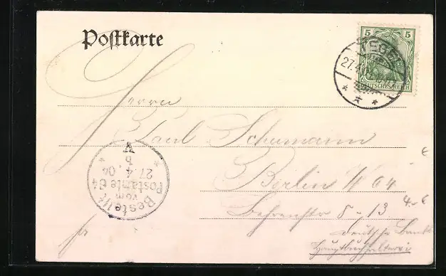 alte Ansichtskarte, gelaufen 1904, Bugspur li. unten, guter Zustand