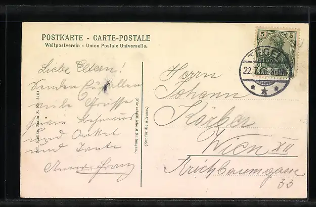alte Ansichtskarte, gelaufen 1906, guter Zustand