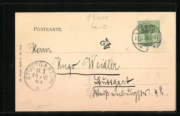 alte Ansichtskarte, gelaufen 1904, guter Zustand