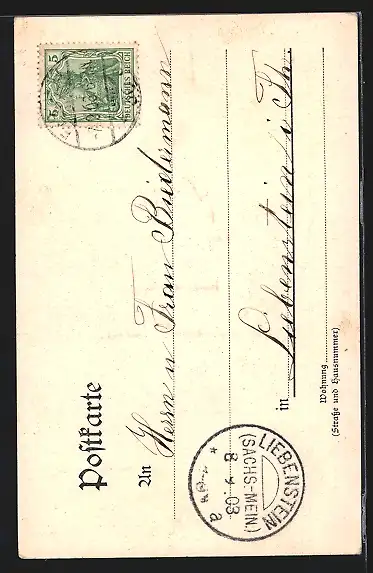 alte Ansichtskarte, gelaufen 1903, guter Zustand