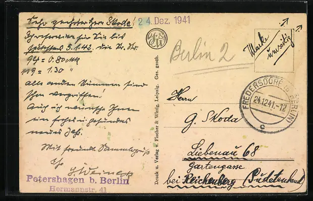 alte Ansichtskarte, gelaufen 1941, guter Zustand