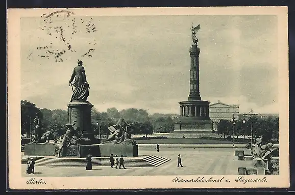 AK Berlin-Tiergarten, Bismarckdenkmal und Siegessäule