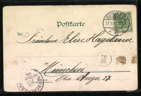 gelaufen 1899, rückseitig Klebe- und Papierreste, guter Zustand