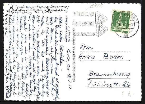 AK Berlin-Tiergarten, Hochhaus im Hansaviertel