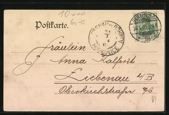 gelaufen 1903, Eckknick oben links, guter Zustand