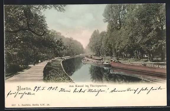 AK Berlin-Tiergarten, Partie am Kanal im Tiergarten