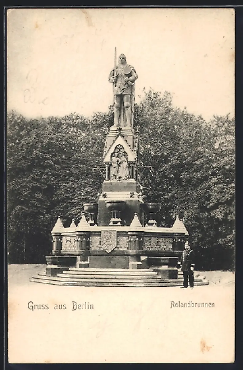 AK Berlin-Tiergarten, Partie am Rolandbrunnen mit Schutzmann