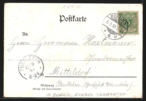 alte Ansichtskarte, gelaufen 1899, Eckknicke unten, guter Zustand