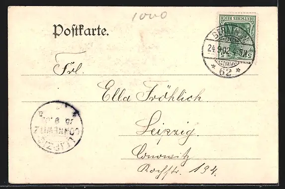 alte Ansichtskarte, gelaufen 1902, Eckknick li. unten, guter Zustand
