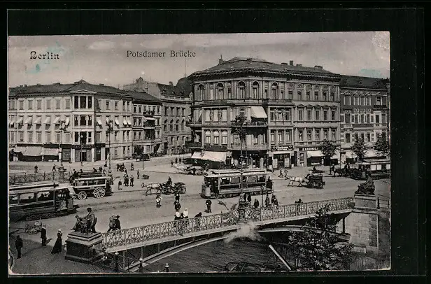 AK Berlin-Tiergarten, Potsdamer Brücke mit Strassenbahn