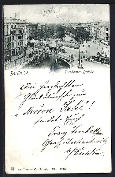 AK Berlin-Tiergarten, Potsdamer Brücke mit Strassenbahn