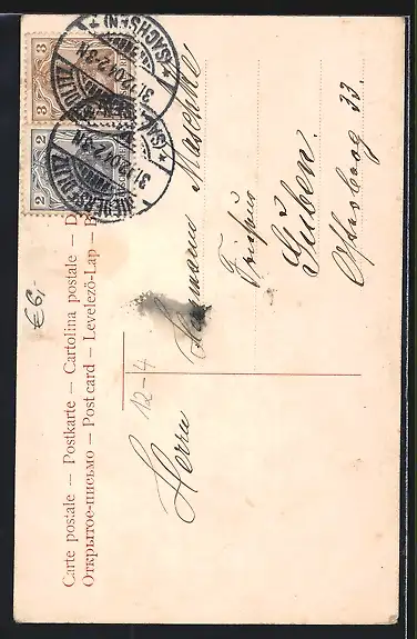 alte Ansichtskarte, gelaufen 1904, Eckknick li. unten, guter Zustand