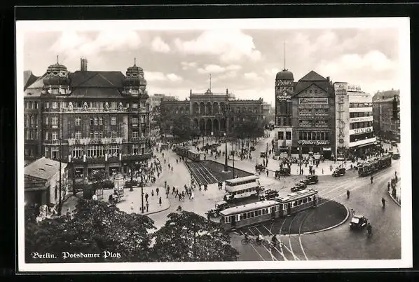 AK Berlin-Tiergarten, Potsdamer Platz mit Strassenbahn