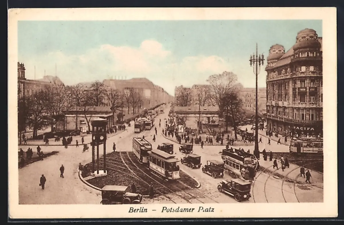 AK Berlin-Tiergarten, Potsdamer Platz mit Strassenbahnen